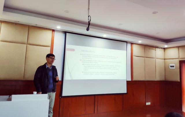 On the morning of November 29, at the invitation of the school of finance, Professor an Yunbi of Odette School of business, University of Windsor, Canada, gave a lecture entitled the dark side of Strengthening Ideology shareholder voing power: an innovation perspective in the East lecture hall of the school of finance, Jiangxi University of Finance and economics. Some teachers of the school of Finance and graduate students of 2018 and 2019 attended the lecture. This lecture is hosted by Ling Aifan, vice president of the school of finance.