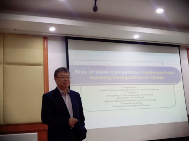 At the beginning of the lecture, researcher Yang Xiaoguang pointed out that the theme of today's speech is to take bank competition as the starting point to explore the impact of bank competition on society, enterprises and banks. Later, researcher Yang Xiaoguang led the teachers and students to trace back the development history of China's banking industry. He said that before 2006, China Banking Regulatory Commission stipulated that each city of joint-stock commercial banks should set up at most one, and the establishment should be approved by the central government and limited by the number of branches. Until April 2009, the CBRC carried out the banking reform, and the joint-stock commercial banks were not restricted, so they did not need the approval of the central government, only the approval of the local CBRC. This change greatly promotes the competition between the joint-stock commercial banks and the five state-owned banks, and then stimulates the business innovation of the joint-stock commercial banks. Then, researcher Yang Xiaoguang pointed out that since the reform of banking system in 2009, China's banking industry has entered the competition situation of small and medium-sized banks. In order to study the effect of this policy, researcher Yang Xiaoguang used did model to test the effect of quantitative policy. Later, researcher Yang Xiaoguang showed us the curve of bank assets / GDP after the reform of banking system, and talked about the curve structural changes after the reform.