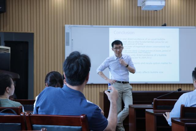 Then, he gave a detailed introduction to the personal collection trading market (Nanjing Cultural Exchange Coin and Stamp Trading Center) and the stamp trading data collected by the article for empirical analysis. Accepted, he elaborated on the six research results from data analysis: one is that there is an asset bubble; the other is that when the asset's useful life is unlimited, the size of the bubble is related to the interest rate; the third is that the size of the bubble is related to the transaction volume and volatility; the fourth is that Tobin tax will reduce transaction volume or volatility, but will not reduce bubbles; fifth, there is a momentum effect; sixth, more naive investors will participate in larger bubbles.