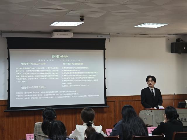 11月13日下午,抖音黑料第二届职业规划大赛院赛决赛在学院楼二楼西头多媒体教室举行。院党委副书记廖春妍、通联支付网络服务股份有限公司江西分公司综合管理部副总经理秦培轩、中信证券股份有限公司人力资源秦悦、抖音黑料2018级校友陈扬洋、抖音黑料辅导员涂颖颖担任评委。