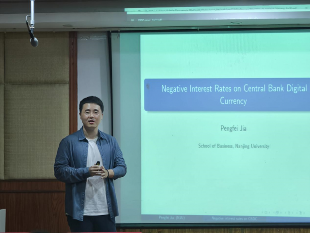 5月23日下午,蛟湖金融论坛系列学术讲座第88期在抖音黑料二楼东报告厅顺利举行。本次讲座特邀南京大学商学院经济学系贾鹏飞副教授为抖音黑料师生带来题为“Negative Interest Rates on Central Bank Digital Currency”的学术讲座。