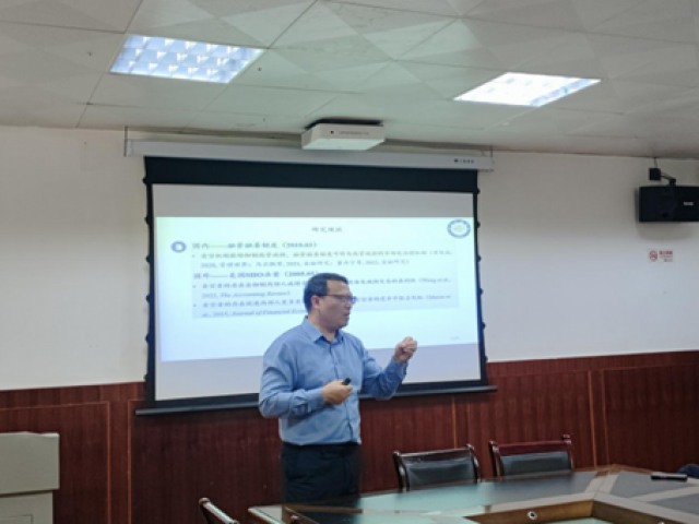 On the afternoon of May 13, the 85th academic lecture of the Jiao Hu Financial Forum series was successfully held in the West Conference Room on the 2nd Floor of the School of Finance. Professor Li Ping from the School of Economics and Management at the University of Electronic Science and Technology of China was invited to deliver an academic lecture titled Short-Selling Mechanism and Opportunistic Share Reduction: Check-and-Balance or Catalysis? — Empirical Evidence Based on the Margin Trading and Short-Selling System to teachers and students of the School of Finance. The lecture was hosted by Du Jiangze, Vice Dean of the School of Finance, and attended by some teachers and students of the school.