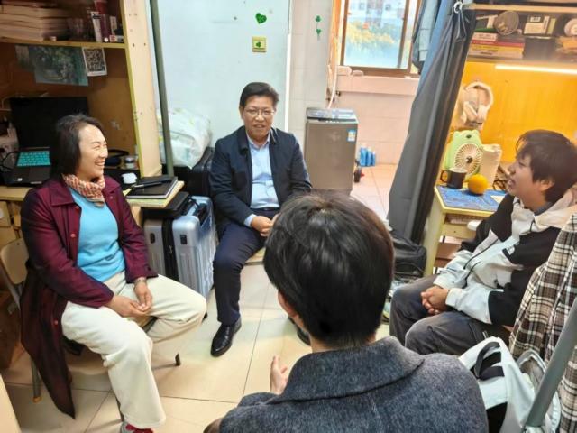 班会结束后,袁红林前往蛟桥园14栋617学生寝室,围绕能力培养、职业规划、实习经历、兴趣爱好等话题与同学们促膝长谈。他强调,当代金融学子要深耕学术沃土,既要筑牢数学基础,也要开拓编程等跨领域能力;要提前做好人生规划,主动积累实习实践经历,在培养个人爱好的同时学会劳逸结合,让大学生活充实而快乐。