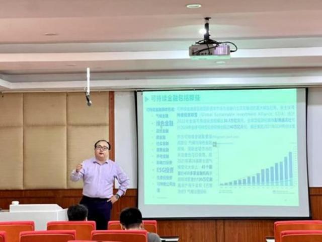 On the morning of April 17, the 83rd academic lecture of the Jiao Hu Financial Forum series was successfully held in the East Lecture Hall on the 2nd Floor of the School of Finance. Wu Haifeng, Director of the Tech-Finance Research Center at the Institute of Data Economy of The Chinese University of Hong Kong, Shenzhen (CUHK-Shenzhen), and Research Fellow at the Institute of Advanced Finance of CUHK-Shenzhen, was invited to deliver an academic lecture titled Green Finance: Theory and Practice to teachers and students of the School of Finance. The lecture was hosted by Peng Yuliu, Vice Dean of the School of Finance, and attended by some teachers and students of the school. In this thematic lecture, Wu Haifeng first introduced the historical context of green finance, noting that sustainable finance—with green finance as its representative—will serve as a core driver for the high-quality growth of China’s macroeconomy in the future. He pointed out that the transition to sustainable finance in the financial industry is a crucial path to achieving sustainable and high-quality development, with the ultimate goal of supporting the country’s strategic development needs. Since the 18th National Congress of the Communist Party of China, China has made remarkable progress in building a green finance system. A multi-level and diversified green finance market, dominated by green loans and green bonds, has now taken shape, providing strong impetus for serving the green and low-carbon development of the real economy. However, green finance also faces multiple challenges: the formulation of the dual carbon goals (carbon peaking and carbon neutrality) imposes stricter requirements on enterprises’ sustainable development, and high-carbon-emission enterprises are confronted with transition risks and physical risks.